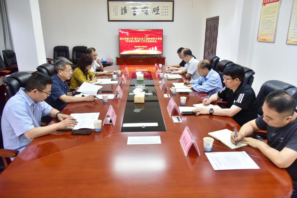 5月9日,湖北生态工程职业技术学院党委书记石道良、副校长石海云一行来到学校,就“专本联合培养”工作在行政楼六号会议室进行座谈交流。学校党委常委、副校长李军出席座谈会。