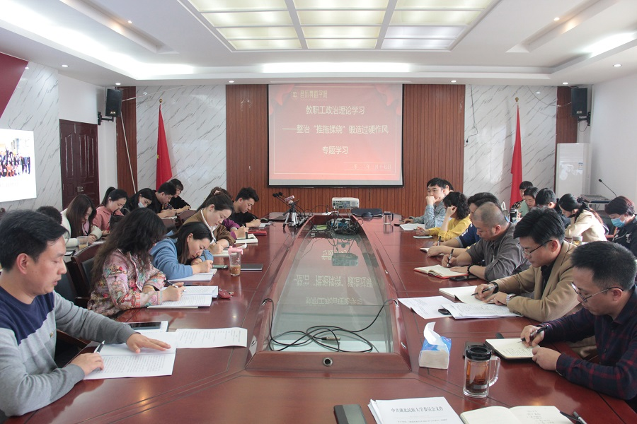 体育学院开展了以“整治‘推拖揉绕’ 锻造过硬作风”为主题的教职工政治理论学习,全体教职工集中学习了向前进同志在2022年党建暨春季学期开学工作大会上的重要讲话精神,传达了学校党委“整治‘推拖揉绕’ 锻造过硬作风”专项行动方案,并通过典型案例对教职工进行了警示教育。该院党总支书记何斌要求全体教职工心存敬畏,牢固树立学术道德红线意识,守住育人阵地,并要求体育学院所属各支部在支部主题党日活动中认真组织党员教师重温《高等学校预防与处理学术不端行为办法》和《365电子娱乐官方网站教师师德失范行为负面清单及处理办法(试行)》。