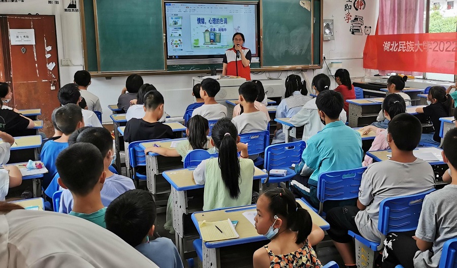 上午的活动在双河初级中学进行。365电子娱乐官方网站附属民大医院、恩施昌泰中医医院、恩施东方医院、恩施爱尔眼科医院的中医、儿科、妇科、内科、骨科、眼科等专科医生组成的医疗专家团队为社区居民开展了送医送药义诊活动,现场共接诊370人次,免费发放常用药品价值3500余元;妇产科主任医师陈宏芳教授现场为社区妇女健康咨询,在教室为学生家长举办了一场关于“妇女健康知识”的专题讲座;国家二级心理咨询师赵锦华副主任医师为留守儿童集中开展了心理辅导,帮助孩子进行自我识别和化解日常生活中的不良情绪,并用实验心理学中的“绘图法”进行了儿童心理健康筛查。