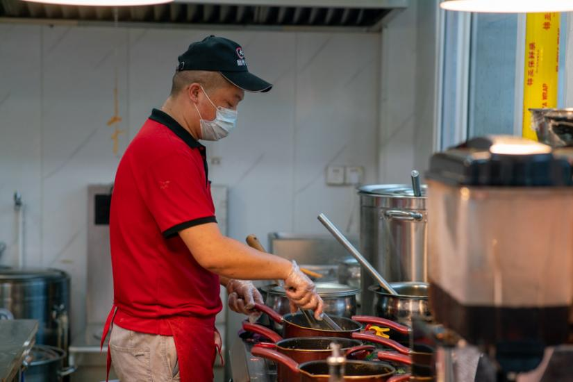 每天四点刚过就起床,五点钟开始上班,不晚到一分一刻。一年又一年,杨长进早已习惯了这种生活。疫情防控需要实行错峰就餐措施,这就意味着他需要更早地进入工作状态。“蒸包子的话两点多就要起床,做饼子的话三点多就要上班,就算是做面条,五点多也必须到位了,这样才能在六点前准备好所有的食材。”杨长进告诉记者。