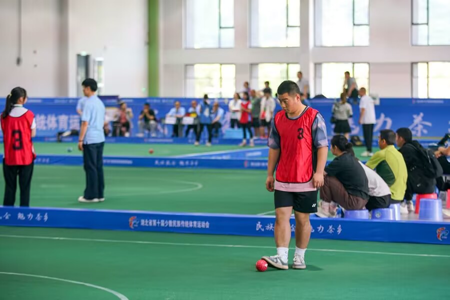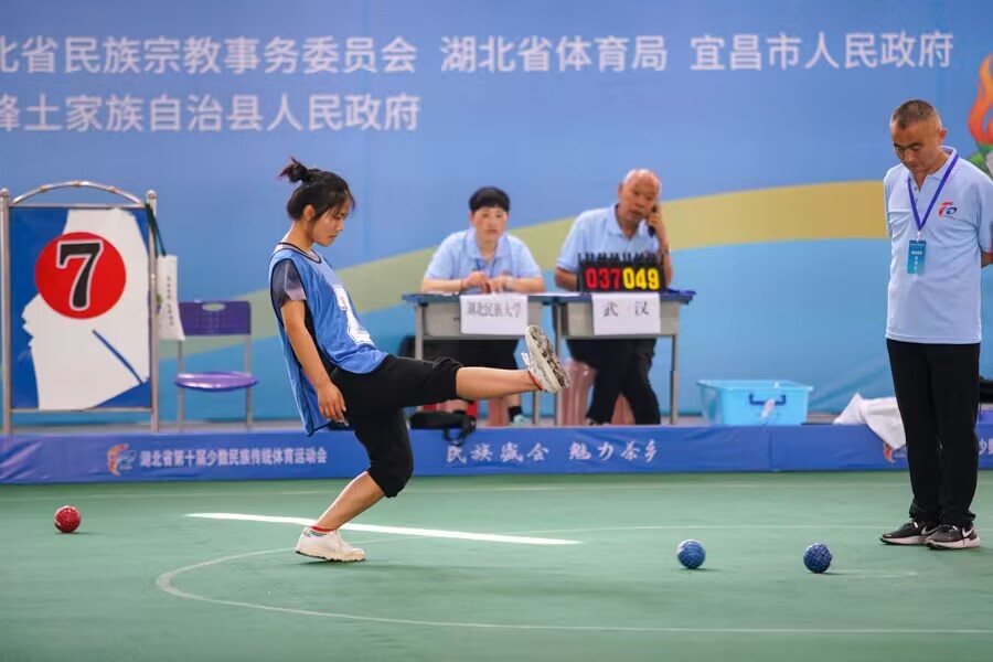 365电子娱乐官方网站代表团的运动健儿进行蹴球比赛