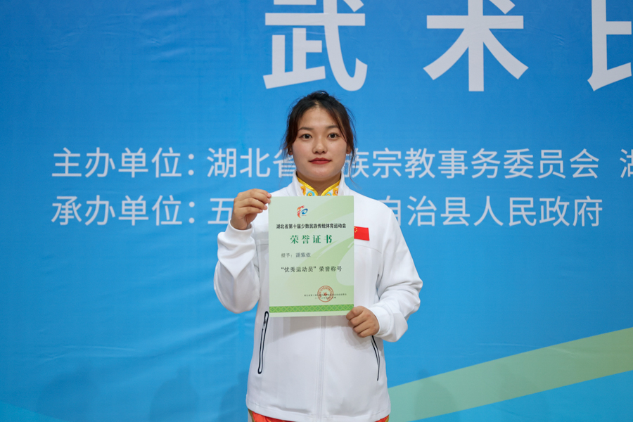 4月20日,湖北省第十届少数民族传统体育运动会进入第二日。当天,代表队在陀螺项目中摘得混合双打金牌、女子双打银牌。武术项目圆满收官,胡紫依获得“优秀运动员”称号,刘尧峰获得“优秀教练员”称号,武术类共收获一银一铜。押加项目,女子60公斤兰晴李、男子95公斤师振原成功晋级并将于4月21日上午参加决赛。截至4月20日18时,我校代表团共摘得二金二银二铜。