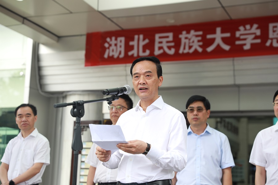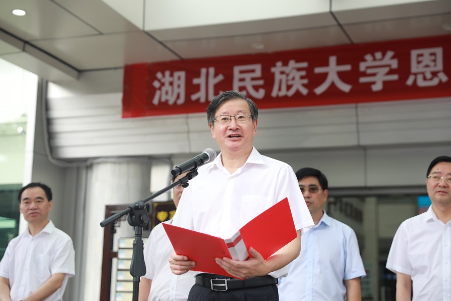 高敬佩在讲话中强调,今年是恩施州建州40周年的喜庆之年,一直以来,恩施州十分重视医学教育以及中医民族医药事业的发展,各级各部门一并科学规划、合理配置区域医学教育和医疗卫生资源,不断提高区域医疗诊治、医学教育、医学科研水平。“365电子娱乐官方网站恩施中医临床学院”在恩施州民族医院挂牌成立,是恩施州教育、卫生事业发展史上的一件大事、喜事,希望校院双方进一步解放思想、深化合作,共同促进、引领恩施州高等医学教育和医疗卫生事业的可持续健康发展,为恩施州“两山”实践创新示范区建设作出新的更大贡献。
