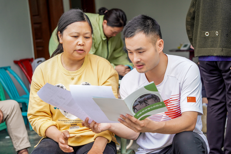 朱欢为村民讲解测试结果以及普及动脉硬化防治的相关知识