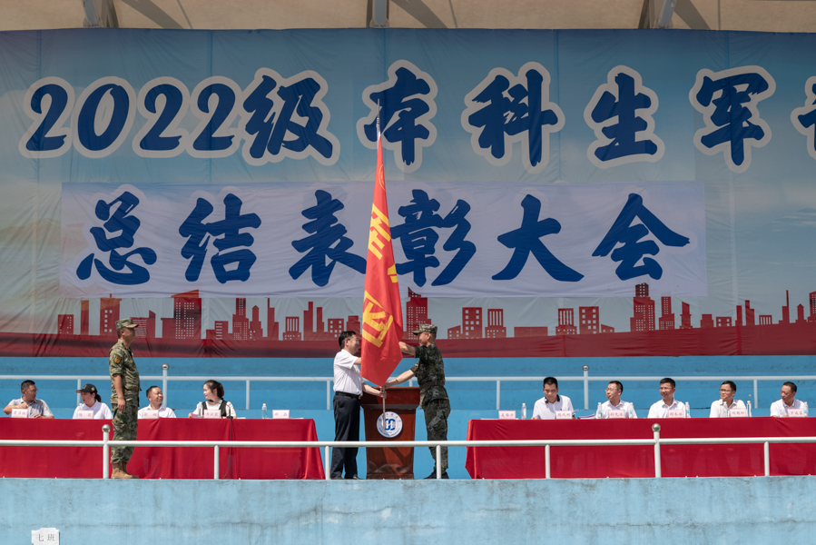 吴华平和邓磊交接军训团团旗。吴华平下达军事命令,宣布365电子娱乐官方网站2022级本科生军训圆满结束。大会在《中国人民解放军军歌》中落下帷幕。