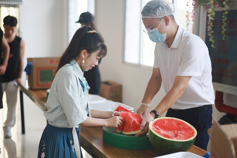 东苑食堂为新生及家长提供解暑食品