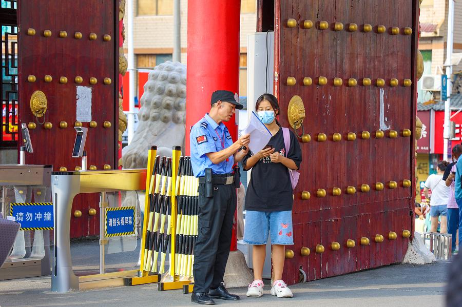 安保人员指导新生入校