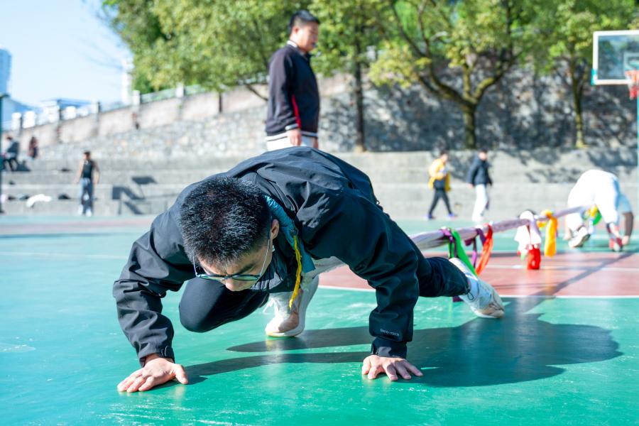 当天下午,民族趣味运动会在五环体育场、德智楼陀螺训练场、毽球场三个场地同时进行,共包括跷旱船、毽球两项集体项目,蹴球、押加两项个人项目。跷旱船是土家族传统体育项目,两人一组互相抓住对方小臂,坐在对方脚背上形成“船体”,两人手脚并用、屈伸腰背,使“船体”不断起伏前进,犹如水中摇船。押加是藏族人民喜爱的民族传统体育项目,两名参赛选手为一组,将一条长绸带两端系成圆环套在脖子上,选手向两端奋力拉,先触碰目标物品者获胜。参赛选手在观赛学生激烈加油声中咬紧牙关、奋力向前,充分展示学生积极向上的精神风貌,调动其体育热情,同时,在运动中收获知识与情谊。化学与环境工程学院龚春莲同学在参加了趣味活动后表示,“民族文化节为我们提供了一个认识和了解不同民族文化的机会,能够加深各民族学生间的联系,既促进了民族团结和社会稳定,也增强了大家的民族团结意识。”