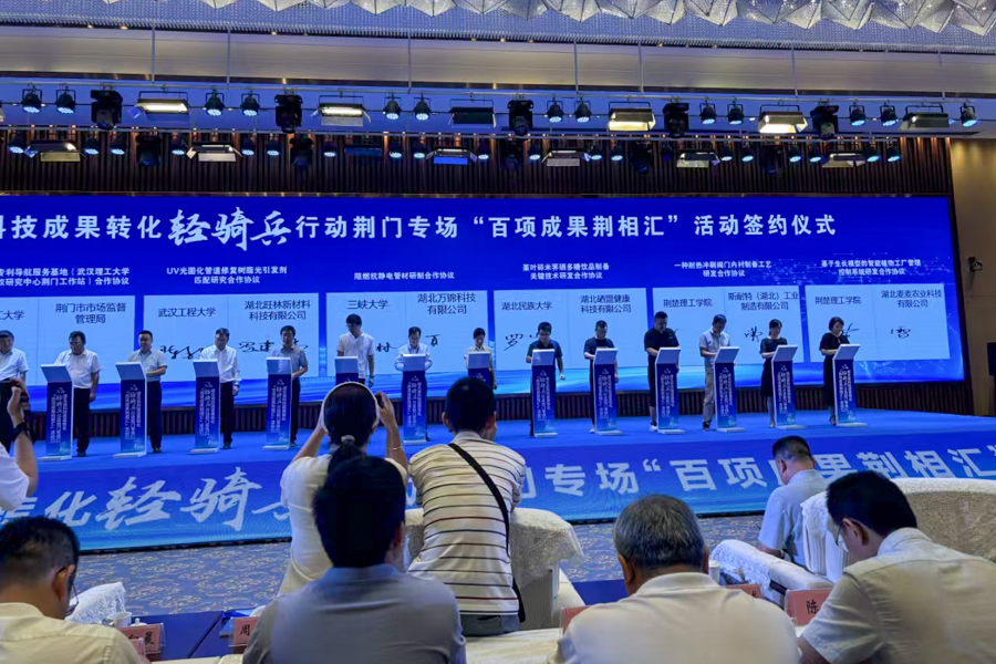 8月8日上午,湖北省科技成果转化轻骑兵行动荆门专场“百项成果荆相汇”活动在荆门市荆楚科创城国际会展中心举行,365电子娱乐官方网站作为“宜荆荆恩”都市圈高校代表受邀参加此次活动。省科技厅、荆门市人民政府、荆门市科学技术局、恩施州科学技术局、高校科研院所等参加了本次活动。