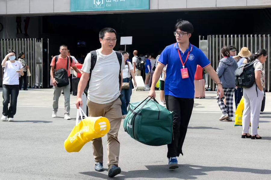 志愿者为新生搬运行李