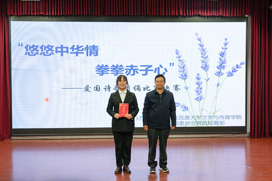 本网讯(记者 陆宇楠 陈雨捷 田忻)10月24日,文学与传媒学院在文传演播厅举办以“悠悠中华情,拳拳赤子心”为主题的爱国诗歌朗诵比赛决赛。文学与传媒学院老师徐定辉、郑泽红、范生范、毕曼应邀出席并担任评委。