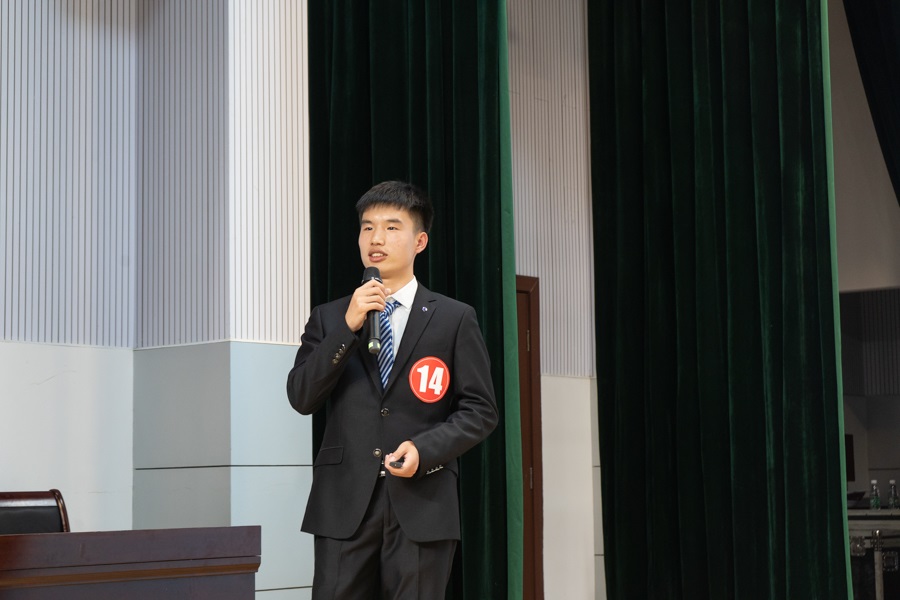 答辩会现场,16名研究生国家奖学金候选人依次上台进行陈述和答辩,由评审老师委员根据选手综合表现,遴选出15名候选人推荐至教育部参与研究生国家奖学金评审。