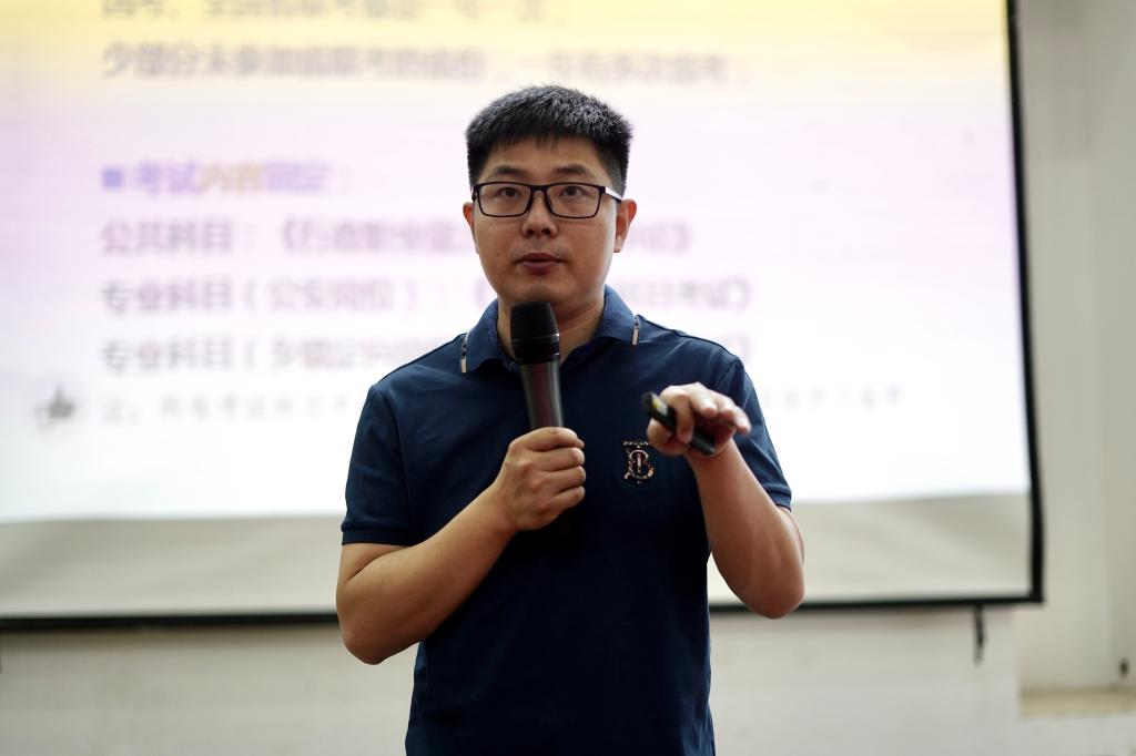 考公上岸学生发言。他首先分享自身报考经验,并提出早备考和多刷题两点建议。最后,他预祝学生在考试中取得佳绩。