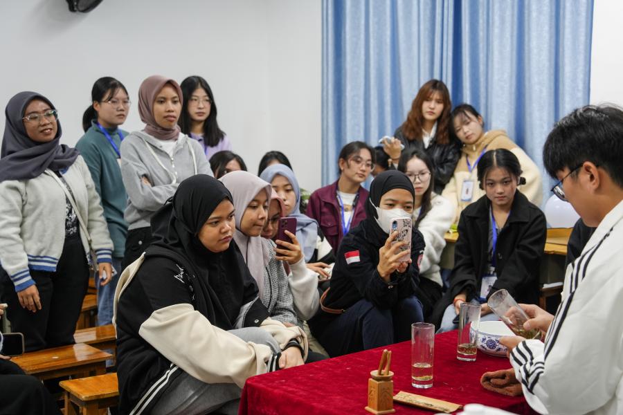 11月4日,国际教育学院在外国语学院6102教室举办“寻茶思韵”主题茶文化推广活动,外国语学院教学科科长刘米,国际教育学院教学科科长王冬娥受邀出席活动,2023至2024年度新青年班全体学员和学校全体留学生参加活动。