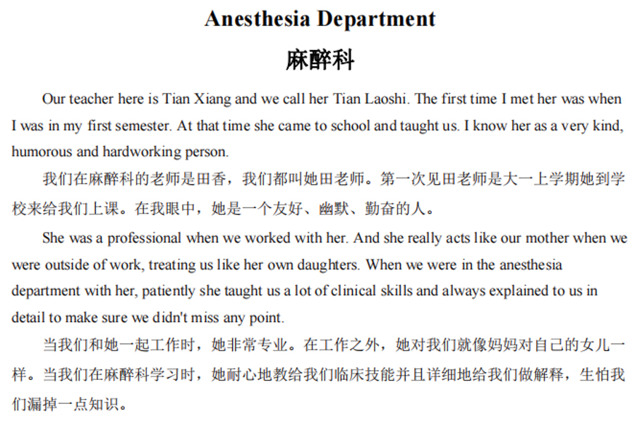 本次征文活动评选出一等奖3名、二等奖5名、三等奖8名。留学生在征文作品中深情讲述了自己在民大医院实习及学习的经历,在各科室轮转的所见所闻,与带教老师、病患及家属、及其他中国实习生相处的故事等。