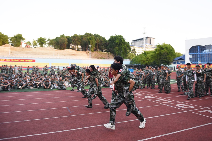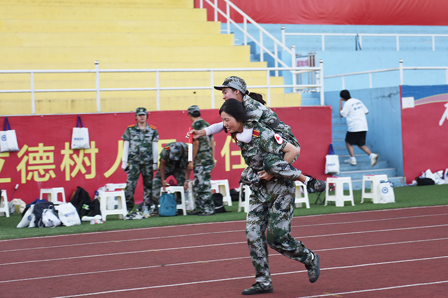 参加活动的152名大一新生来自19个班,两人一组进行三十米迎面接力,由一人将另一人背在背上“负重前行”,总用时最短到达终点的班级获胜。最终,0524404班以一分零二秒获得一等奖。