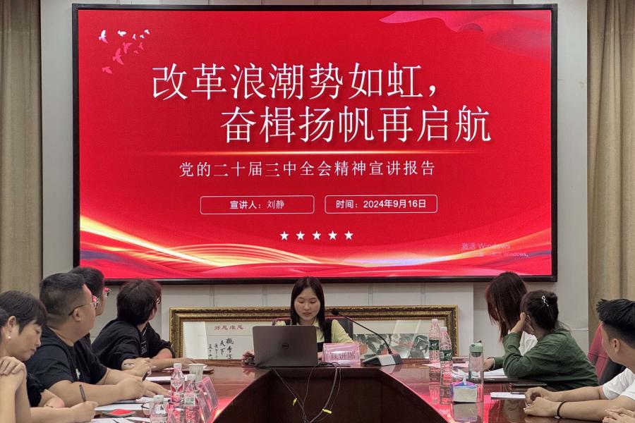 为推动党的二十届三中全会精神在学校落地生根,9月25日,党委宣传部、马克思主义学院党总支、马克思主义学院研究生党支部在德智楼三楼会议室联合举办了“高举改革开放旗帜,推进强国复兴伟业——学习贯彻党的二十届三中全会精神”理论宣讲活动。