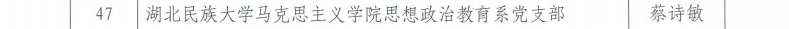 近日,中共湖北省委教育工委公布了高校“双带头人”教师党支部书记“强国行”专项行动团队名单,我校马克思主义学院思想政治教育系党支部书记蔡诗敏入选全国高校“双带头人”教师党支部书记“强国行”专项行动团队,数学与统计学院教师党支部书记王清龙入选全省高校“双带头人”教师党支部书记“强国行”专项行动团队。