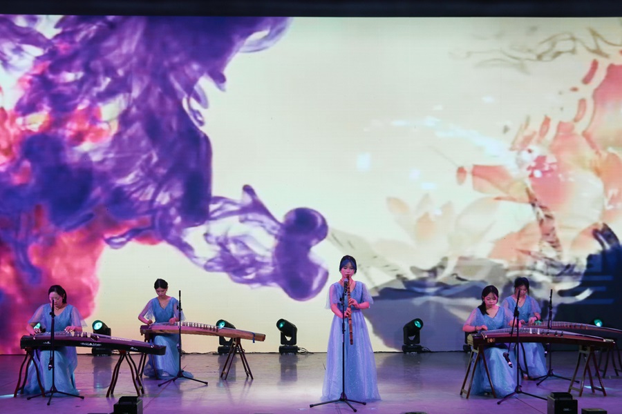 DXE动漫社带来舞蹈《爱的魔法》,舞者们身着色彩绚丽的动漫风服饰,随着欢快的音乐节奏舞动,动作整齐,令人赏心悦目。茶文化协会、兰亭书苑和非物质文化遗产研习学社联合带来表演《茶笺墨舞华服赏》,通过情景演绎和讲解茶道、传统服饰、书法的文化背景丰富观众对民族文化的了解,弘扬了中华优秀传统文化。
