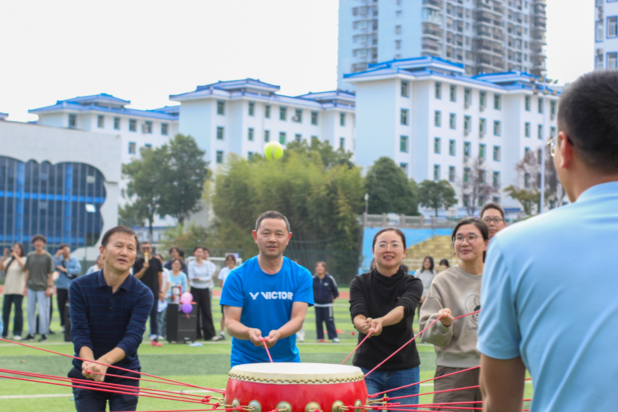 本次活动共设置四个趣味互动游戏。在“踩气球”与“同心击鼓”比赛中,各组队员配合默契,协商合作,适应配合队友节奏以争取更高的分数,展现出团结互助的集体精神。“袋鼠跳接力赛”与“拔河”将比赛推向高潮,各小组队员相互配合,分工协作。最终,研究生队获得比赛冠军。