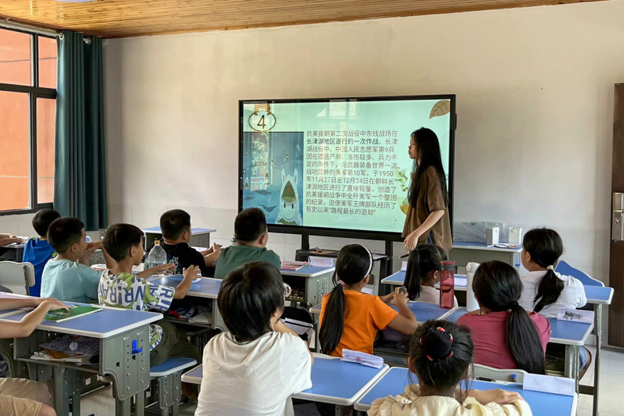 “溪”望星光爱心助学团将室内教学与户外实践相结合,为乡村孩子们打造了多元化的知识课堂,传递思政教育,培育和巩固了学生爱党爱国情怀。