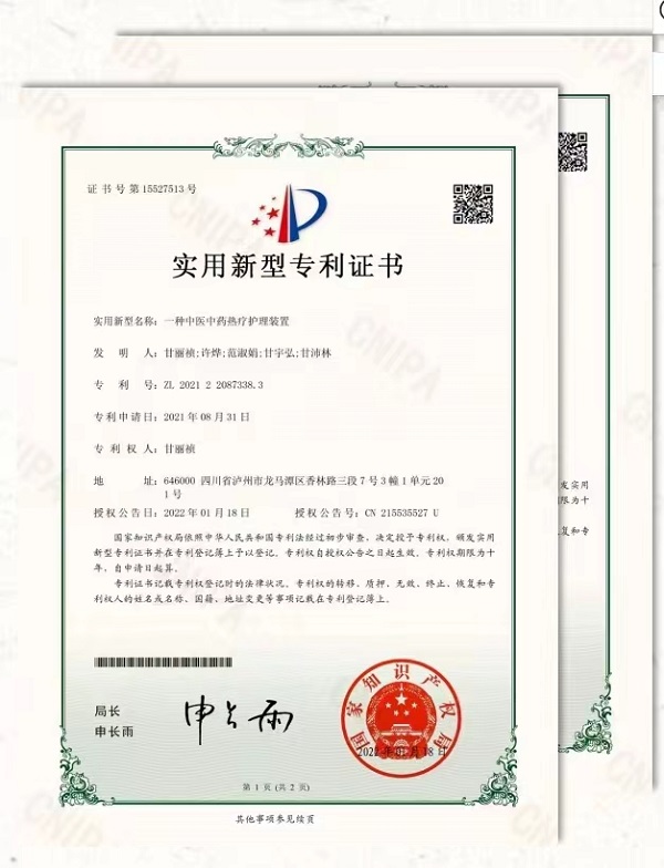 一个好的项目的发展不是闭门造车,而是需要开拓的眼界及广泛的交流。甘丽祯和团队成员积极参加各大比赛,从“首届创新创业节”路演二等奖到获得湖北省第十二届“挑战杯·中国银行” 大学生创业计划竞赛省级铜奖,团队获得各大奖项共计18项,在比赛中展示自我,向优秀的创业团队学习。同时及时整理案例和数据形成实践科研成果,团队在《中外企业家》杂志发表论文《中医专业大学生创业实践与思考——以民大养生推拿馆为例》,还申请并通过新型实用专利《一种中医中药热疗护理装置》,也相继提出新型实用专利《一种用于烧灯火疗法的装置》和《隔物灸多功能火罐》的申请,以创新更好引领项目发展。