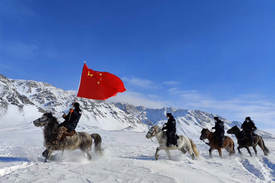 青河县红星边境警务站是别克难以忘记的采访站点,“室外,放眼望去,蔚蓝天空下一片冰雪世界。一出警务站的门,阵阵寒气直逼每一个人。”他回忆到,红星边境警务站边境管段全长36公里,每周队员们都会巡逻几次。“出发不一会儿,风变大了,每个人的面罩上都挂满了白霜。”别克在《新疆青河县红星边境警务站:守护好祖国的边防线》中写到,他跟着边关战士在海拔将近3000米,冬季温度将近零下40度的高山上,完成几十公里的边境巡防工作,跟着他们用镜头记录边防战士的日常,用脚步丈量祖国的边境线,用手中的笔弘扬了喀喇昆仑精神,更是在心中对祖国的强大有了具象的体会。