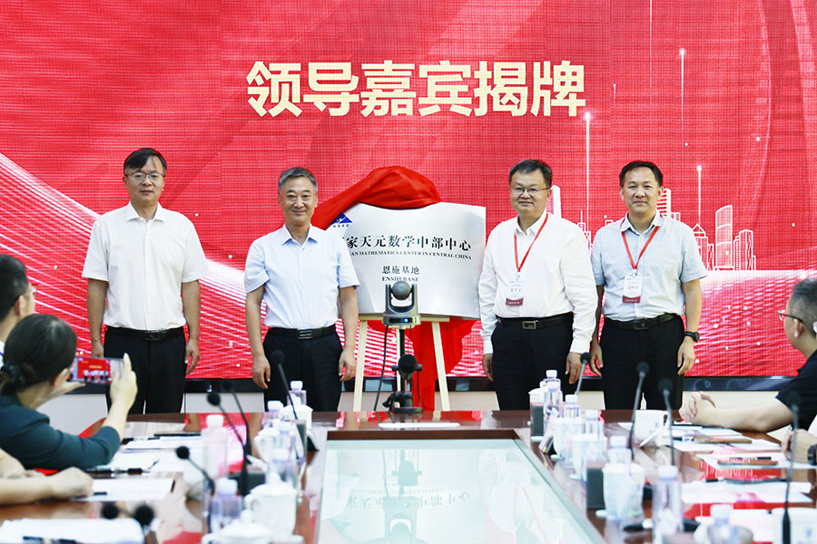 张平文、范辉军、顿祖义、刘志军共同为国家天元数学中部中心恩施基地揭牌。