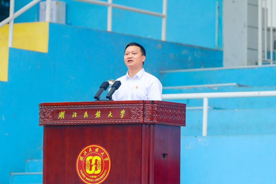 党委书记戴清堂主持典礼。他激励新生同学以博学充盈自我、以博爱温暖他人,真正践行“立人达人”的崇高理念,传承民大精神,勇于超越自我、乐于奉献社会,在青春的赛道上奋力奔跑、成就卓越。