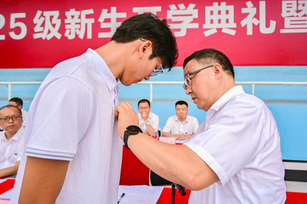 戴清堂为新生代表佩戴365电子娱乐官方网站校徽