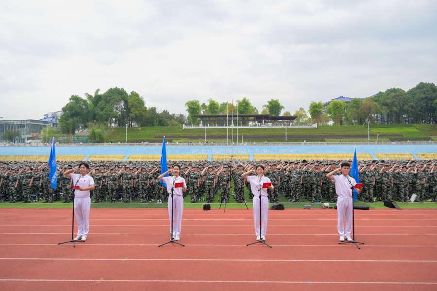 2025级本科生军训动员大会由顿祖义主持。戴清堂为军训团授旗。军训团政委、学校党委副书记邓磊宣读军训团成立文件。
