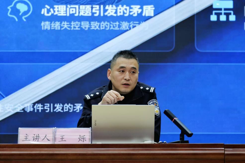 王烁结合自身多年高校安全治理实战经验,围绕校园矛盾纠纷排查化解作专题讲解。他梳理归纳了学生人际摩擦、情感经济纠纷、师生沟通矛盾、家校信息不对称、心理问题引发隐性冲突等六大常见矛盾类型,强调“早发现、早报告、早干预”的核心工作原则,系统分享了矛盾隐患摸排方法与化解技巧,为一线学生工作队伍及时发现矛盾、分析根源、建立机制、避免次生伤害的提供了专业指引。针对校园高发安全风险,王烁还就常见诈骗类型及防范要点作警示教育,提醒师生提高警惕、守住安全底线。