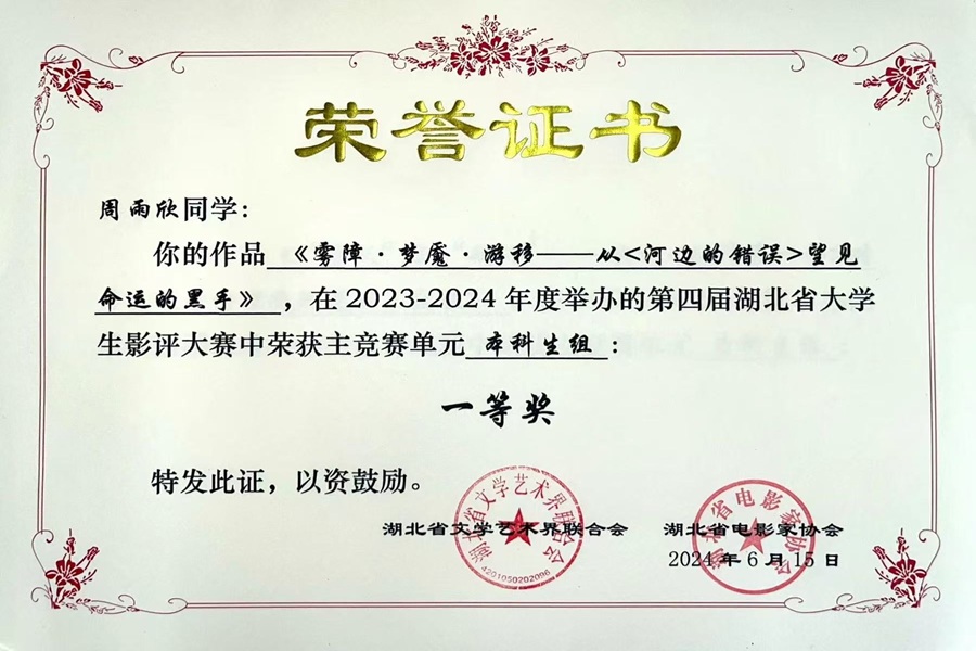 林静指导学生在湖北省大学生影评大赛中获奖