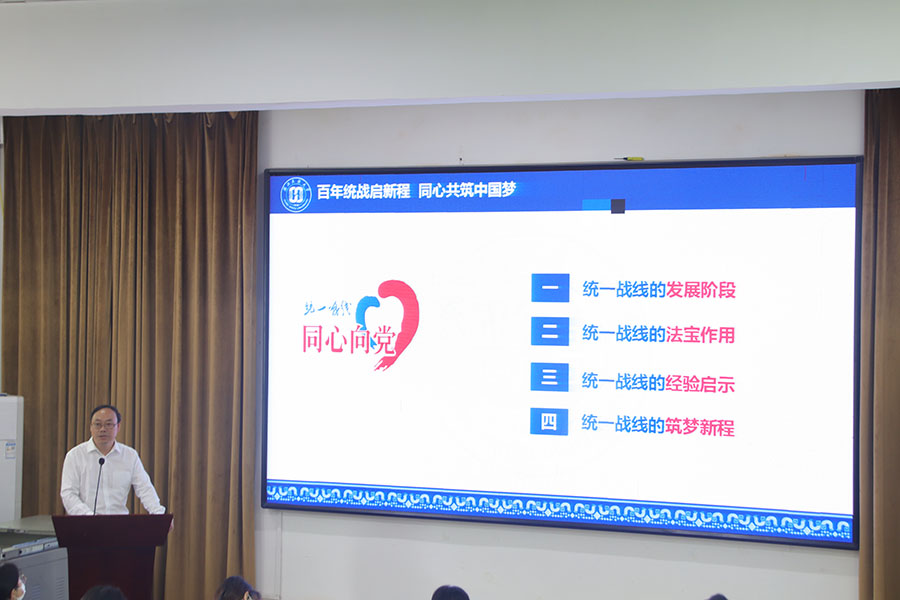 5月21日,学校党委常委田景福在智能科学与工程学院213学术报告厅讲授专题统战课,智能科学与工程学院、数学与统计学院、生物科学与技术学院、林学园艺学院、附属民大医院2022年春季学期全体发展对象及部分师生党员聆听了报告。报告由智能科学与工程学院党委书记孙先波主持。田景福以“百年统战启新程,同心共筑中国梦”为主题,围绕统一战线的发展阶段、法宝作用、经验启示、筑梦新程四个方面,全面回顾了统一战线的定义、性质...