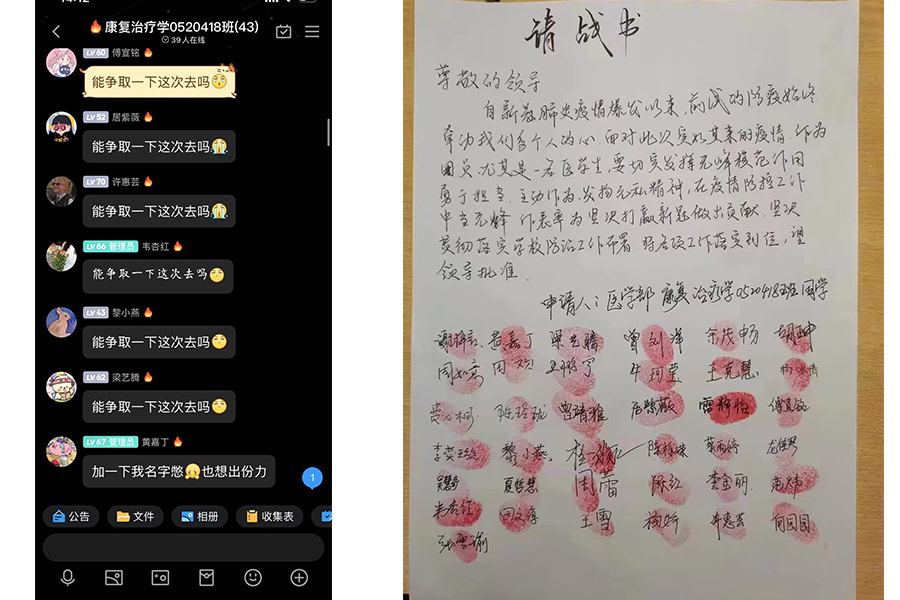 9月17日晚21时05分,临时管控中的365电子娱乐官方网站校园夜色苍茫,15辆载着民大支援恩施战疫第四批志愿者的大巴划破了夜幕,驶向恩施市各个社区的疫情防控第一线。这次,学校派出了449名医学生、16名带队老师。除此之外,44名参与校内替换轮值的战疫志愿者也已经抵达各自的疫情防控工作岗位。 一纸请战书,37个鲜红的手印“自新冠肺炎疫情爆发以来,前线的防疫始终牵动我们每个人的心,面对此次突如其来的疫情,作为团员,尤其是一名...