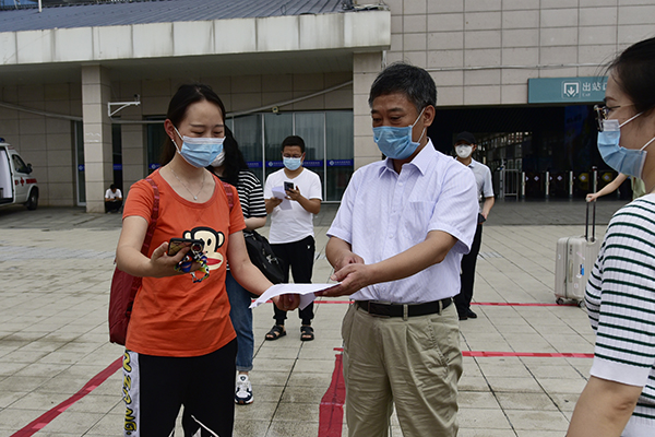 吴建清、祝建波在校门口观摩指导演练顿祖义在火车站观摩指导演练“学生”有序进入校门“学生”进行体温检测“学生”入住公寓本网讯 我校定于6月21日、6月26日按照“错时错峰、自愿申请、非必须不返校”原则分两批安排2020届毕业生和有科研任务的学生返校。为做好毕业生返校疫情防控工作,确保学生安全有序返校,6月15日上午,我校开展毕业生返校疫情防控演练。校领导到场观摩指导,相关职能部门负责人、部分教师参加演练。演练...