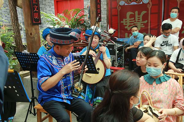 建始南乡锣鼓代表性传承人单长春讲解南乡锣鼓发展历史国家非物质文化名录“土家撒叶儿嗬”省级传承人谭学聪展示巴东号子建始南乡锣鼓代表性传承人单长春和老师们交流本网讯(通讯员 雷鹏)6月11日,音乐舞蹈学院全体教职工来到恩施土家族女儿城非物质文化遗产传承展演基地,开展特色工会活动,近距离接触南乡锣鼓、巴东堂戏等非物质文化遗产。传承基地的艺人们为音乐舞蹈学院全体教师表演了南乡锣鼓、民歌联唱、高腔山歌《幺妹...