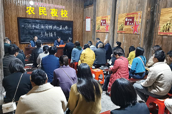宣讲现场宣讲团与驻村干部座谈交流本网讯 为进一步做好学习贯彻《习近平谈治国理政》第三卷的理论辅导与宣讲工作,10月14日-15日,马克思主义学院组织专家团队赴“理论热点面对面”示范点鹤峰县燕子镇、容美镇开展专题辅导学习活动。学校党委委员、组织部常务副部长洪雁,马克思主义学院党总支书记罗成富、马克思主义学院院长徐铜柱、法学院副院长李文革作为宣讲团队专家参加了此次学习宣讲和调研活动。在容美镇“农民夜校”,...