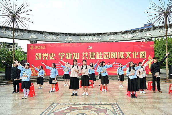 朗诵《我们的革命时代》(通讯员 陈璇/摄)本网讯(记者 聂夏茸 陆宇楠 成欢)4月22日,我校联合新华书店集团恩施分公司、桂花园社区居委会举办以“颂党史 学新知 共建桂园阅读文化圈”为主题的全民阅读暨第二十六届世界读书日启动仪式。我校党委宣传部常务副部长唐敦双致开幕词。他介绍了举办读书节的根本目和重要意义,正值我党百年华诞,全党上下开展党史学习教育,他希望通过活动引导广大青年学生、社区职工、人民群众...