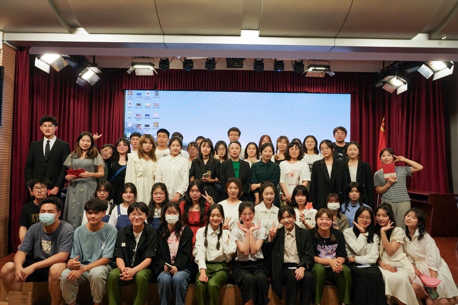 5月20日,文学与传媒学院在文传演播厅举办以“少年意气,诗溢桂园”为主题的经典诵读比赛。该院新闻传播系主任宋艳丽,副主任谭苏,学生科老师穆小雪,老师宋永华受邀出席本次大赛并担任评委。大合照本次大赛共有11组选手参赛,最终第九组选手摘得本次大赛桂冠。《永远的格桑梅朵》表演现场第二组选手王欣怡、邱可欣带来朗诵《闪耀吧,青春的火光》,其铿锵有力的朗读,抑扬顿挫的语调,配合流畅的肢体动作,诵出青春的意义当是...