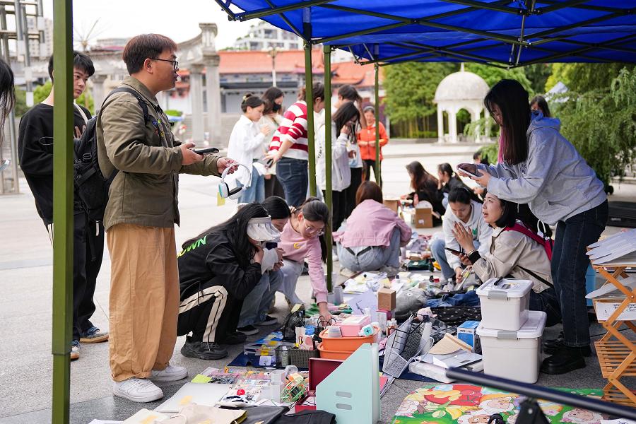4月27日,我校在大学生广场举行以“践行绿色环保生活,共创清洁文明校园”为主题的第十五届“拾悦”跳蚤市场活动,吸引了众多学子参与,热闹非凡。现场售卖的商品包含书籍资料、花卉植物、生活用品等,琳琅满目、应有尽有。教师教育学院将各类考研和四六级资料陈列整齐,为学生提供多元的学习资料。文学与传媒学院出售非物质文化遗产恩施手工扇,颇有风韵,引人驻足。此外,部分学院还采取游戏互动的方式,增强互动感吸引顾客,...