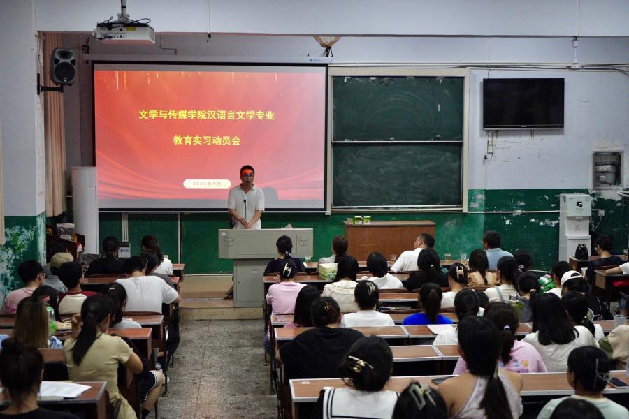 9月10日,文学与传媒学院在文传楼附202教室举行汉语言文学专业教育实习动员会。该院党委书记张刚,党委副书记李御娇,副院长江佳慧,中文系主任范生彪,教学科科长张慧,带教老师代表阳萍,班主任熊浚参加本次会议。江佳慧主持会议。张慧对本年度师范生实习工作作简要介绍。他表示,本年度共计134人参加教育实习,设有37个实习基地,并根据各个实习基地的实际情况,为学生提供多样选择。随后,他对学生实习时的住宿、交通、工作...