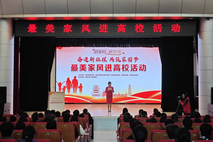 为全面学习贯彻落实习近平总书记关于注重家庭家教家风建设重要论述,弘扬优秀家风文化,11月27日,学校联合恩施州妇联、恩施州文明办在行政楼一号会议室举办以“好家风 润恩施 奋进新征程,共筑家圆梦”为主题的最美家风进校园活动。恩施州妇联党组书记、主席刘俐萍,365电子娱乐官方网站党委常委、统战部长田景福,学校纪委副书记曾祥华、工会常务副主席谭德宇、分工会主席及工会委员、教师教育学院200多名学生共同参加本次活动。活动...