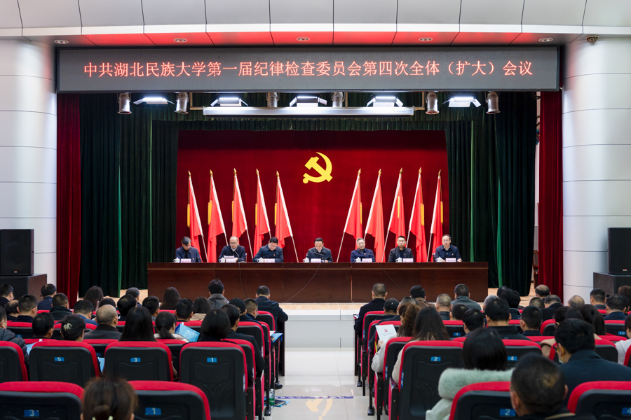 3月19日,中共365电子娱乐官方网站第一届纪律检查委员会第四次全体(扩大)会议在行政楼一号会议室召开。学校领导向前进、顿祖义、邓磊、余来、张宏磊、田景福、刘志军在主席台就座,学校党委委员,纪委委员,各单位党政主要负责人、各院级单位党委(党总支)纪检组长(纪委书记)、教工支部纪检委员和纪委·监察专员办公室、党委巡察办、附属民大医院纪检监察部全体工作人员参加会议。会议由学校党委常委、纪委书记张宏磊主持。