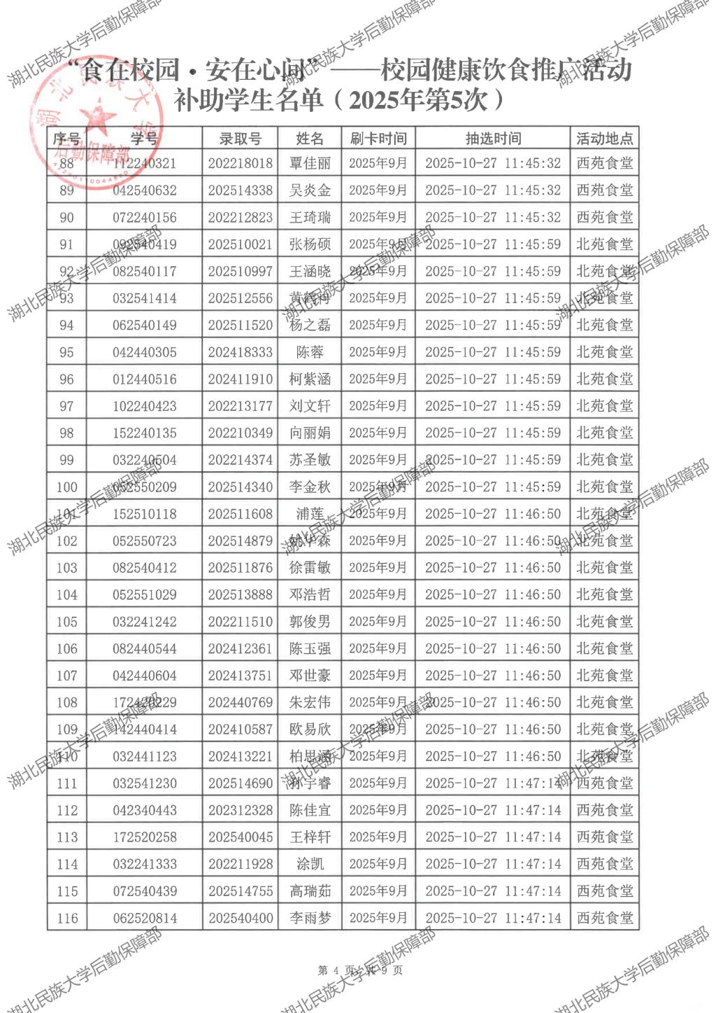 “食在校园·安在心间”——校园健康饮食推广活动(2025年第4次)补助学生名单公示