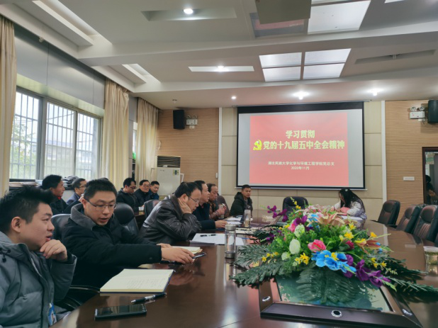 全体教职工要充分认识党的十九届五中全会的重要意义,加强学习,把思想统一到党中央、湖北省委和学校党委决策部署上来。要把学习宣传贯彻党的十九届五中全会精神作为当前和今后一个时期的重大政治任务,深入、系统、反复学,吃透精髓,把握实质,努力做到理解透彻、融会贯通、知行合一,在教学、科研等工作岗位上建功立业。结合学院实际,要用十九届五中全会精神指导化环学院建设和发展,认真谋划今后五年的发展目标、思路和措施,以博士点建设为抓手,全面推进“十四五”时期学院“双一流”建设。聚焦主业、奋力奔跑,推动各项事业高质量发展,不断推进学科建设、人才培养、学术研究、和谐校园建设等各项工作行稳致远,为365电子娱乐官方网站在“十四五”时期再创新业绩贡献力量!(责任编辑 向建)