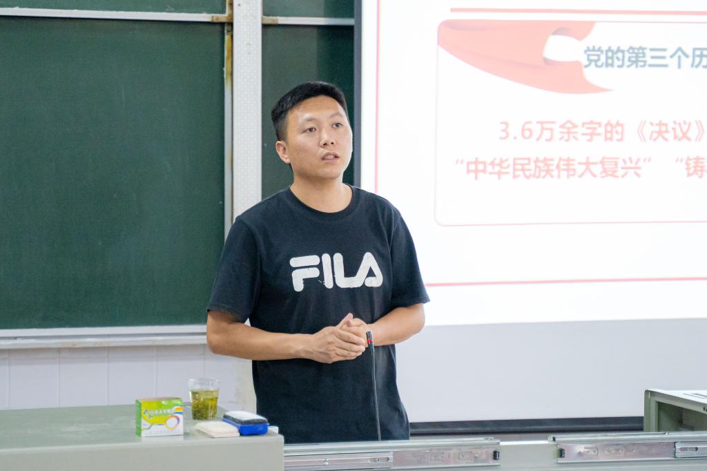 本网讯(通讯员 王鑫/文 杨松/图)6月14日,我院学生党支部在2207教室开展以“从第三个历史决议看新时代中国共产党的中华民族观”为主题的四史专题讲座党课。我校团委副书记向驰受邀担任主讲人。我院部分学生党员到场学习。