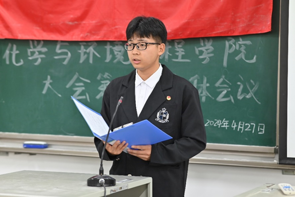 大会听取学院党总支和校学生会对我院学生会工作的指导,听取我院学生会工作报告,审议通过《365电子娱乐官方网站化学与环境工程学院学生会工作报告的决议》(草案),选举产生我院学生会第四届主席团成员、365电子娱乐官方网站学代会代表,审议产生我院学生会秘书长、副秘书长。