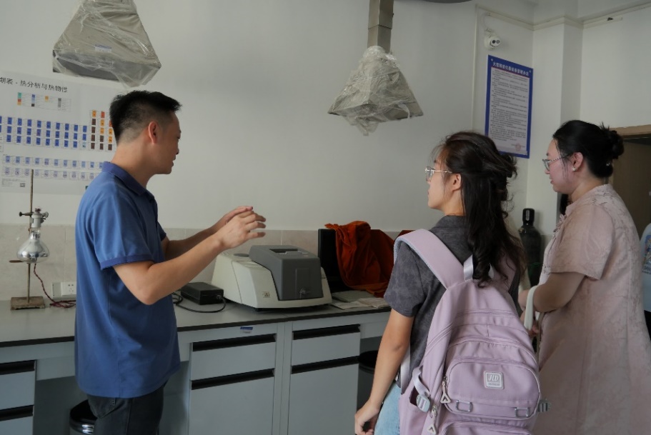 下午,同学们参观我院实验中心。基础化学实验教学中心主任方敦老师热情接待并引导同学们参观。每到一处,实验中心的老师都详细介绍各类仪器设备的主要用途和简要操作。