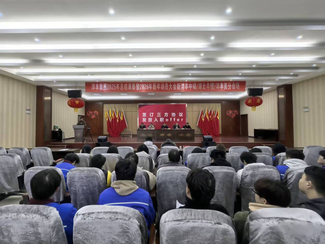 大会期间,董杨书记系统总结了实习安排与学生成长历程;优秀实习生代表刘颖分享了实习收获,表达了对企业文化和职业发展的深切认同;李国祥院长代表学院感谢企业提供的实践平台,勉励学生将实习经验转化为职业发展动力;赵晶副部长详细介绍了公司招聘与薪酬体系,面向优秀学子伸出橄榄枝;龚世虎主任则强调,公司正处于磷酸铁产能扩张的关键时期,急需优秀人才加入,并为员工提供广阔发展通道。本次大会共表彰3名优秀实习生,向8名毕业生发放就业offer。